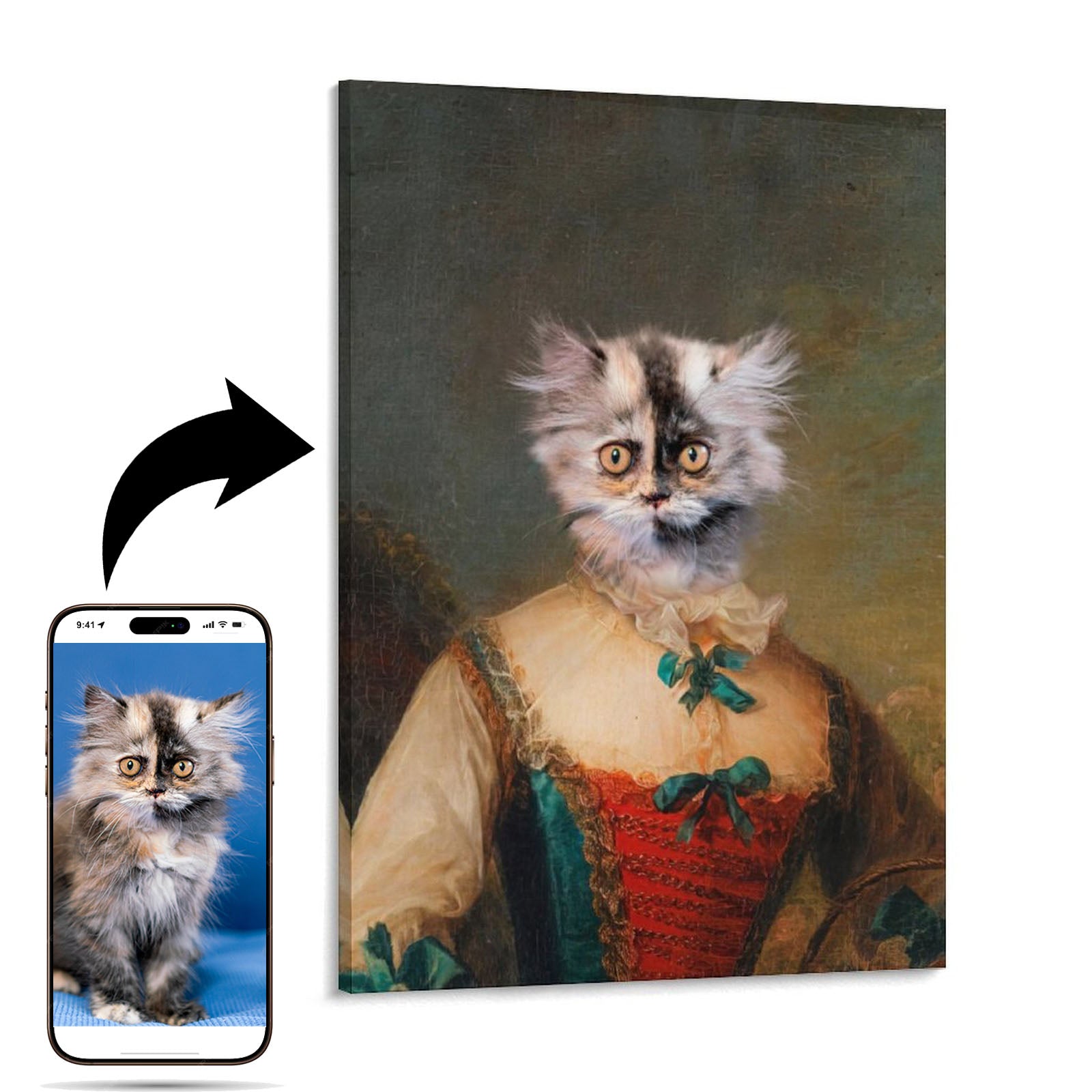 Transform your beloved pet's photo into a stunning canvas masterpiece. Our skilled artists meticulously craft each portrait, capturing your pet's unique personality and charm. Printed on high-quality, fade-resistant canvas, this artwork is a heartfelt tribute to your furry friend.