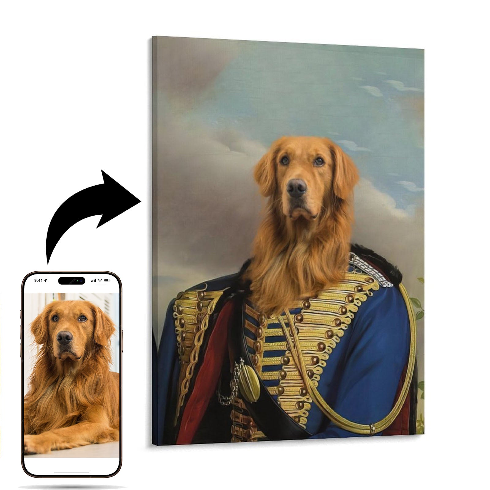 Transform your beloved pet's photo into a stunning canvas masterpiece. Our skilled artists meticulously craft each portrait, capturing your pet's unique personality and charm. Printed on high-quality, fade-resistant canvas, this artwork is a heartfelt tribute to your furry friend.